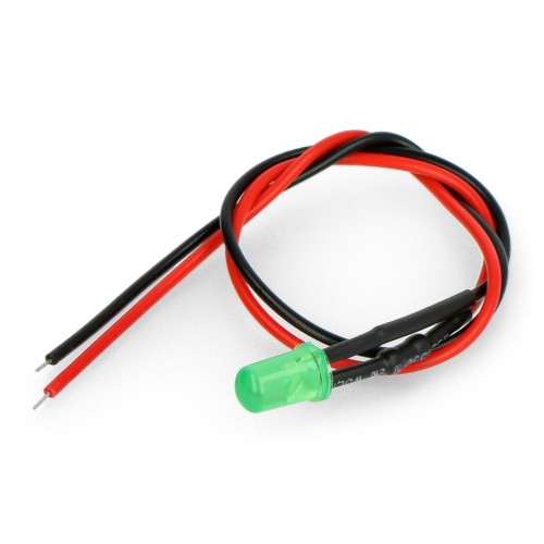 5 mm žalias šviesos diodas su pritvirtintu rezistoriumi ir 20 cm kabeliu.12 V įtampa. Didžiausia diodo srovė yra 22 mA.