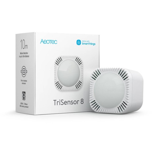„Aeotec TriSensor 8“ yra 3 viename jutiklis, kuris viename kompaktiškame įrenginyje sujungia judesio aptikimą, temperatūros matavimą ir šviesos intensyvumą. Naudodamas „Z-Wave 800“ technologiją, jis pasižymi dideliu reagavimo greičiu, iki 200 metrų atstumu ir pagerintu energijos vartojimo efektyvumu, todėl su viena baterija gali veikti iki 2,5 metų. „TriSensor 8“ yra visiškai suderinamas su „SmartThings“ ekosistema ir pirmaujančiais „Z-Wave“ valdikliais.