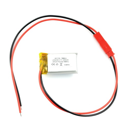 Akumuliatorius Li-Pol Akyga 250mAh 1S 3.7V - sujungimas JST-BEC + lizdas