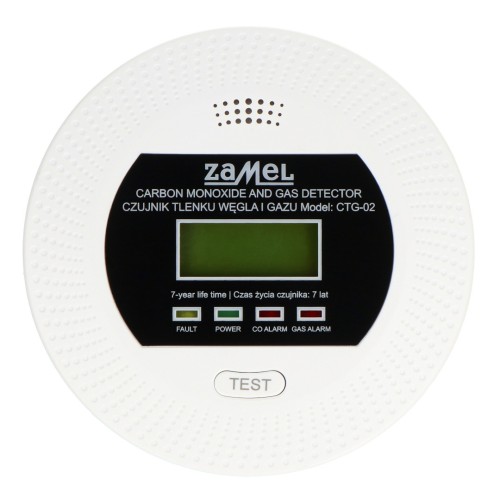 „Zamel CTG-02“ anglies monoksido ir dujų detektorius yra pažangus 2 viename įrenginys, naudojamas pavojingoms anglies monoksido, gamtinių dujų ir propano-butano koncentracijoms patalpose aptikti. Įrengtas elektrocheminiu ir puslaidininkiniu jutikliu, LCD ekranu ir 90 dB optiniu-akustiniu signalu, jis informuoja apie aptiktą grėsmę ir dujų tipą. Maitinimas iš tinklo su atsargine baterija užtikrina nepertraukiamą veikimą net ir nutrūkus elektros tiekimui.