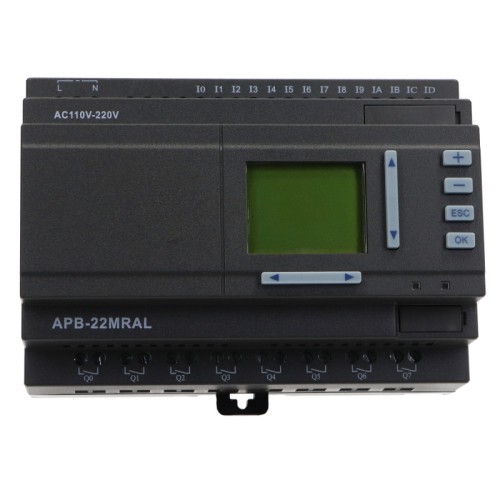 APB-22MRAL programuojamas valdiklis yra pažangus pramoninės automatikos įrenginys, maitinamas 100-240 VAC. Jame iš viso yra 14 įėjimų, kurie visi yra kintamosios srovės tipo. Pažangios šio valdiklio funkcijos apima 8 relines išėjimus, leidžiančius efektyviai valdyti įvairius sistemos įrenginius. Be to, šis valdiklis turi realaus laiko laikrodį (RTC), kuris leidžia sinchronizuoti operacijas laiko tikslumu. Dar vienas naudingas priedas – įmontuotas LCD ekranas, kuris leidžia lengviau stebėti ir konfigūruoti valdiklio parametrus, nenaudojant papildomų įrenginių.
