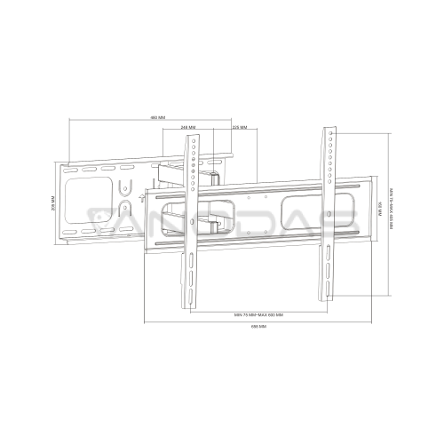 VESA standartas: 75x75, 100x100, 200x100, 200x200, 400x400, 600x400