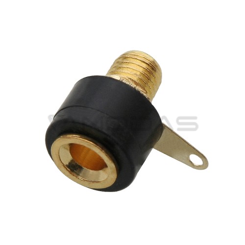 Mažas juodas bananų lizdas su auksu dengtais antgaliais.
