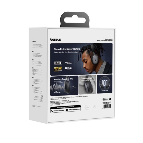 • „Sound by Bose“: mėgaukitės išskirtine garso patirtimi su geriausiomis Baseus ausinėmis, kuriose įdiegta „Sound by Bose“ technologija, užtikrinanti išskirtinę garso kokybę, „Dolby Spatial Audio“ technologija, užtikrinančia įtraukiantį 360° garsą, Hi-Res sertifikatas, užtikrinantis stulbinantį aiškumą, ir LDAC technologija, užtikrinanti 3 kartus didesnį garso detalumą nei standartinis Bluetooth.