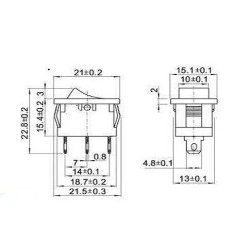 KCD1 svirtis yra ON/OFF jungiklis. Jungiklis turi 2 PIN kaiščius laidams lituoti arba 4,8 mm elektros jungties įkišimui.