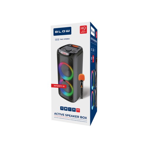 Aukštos kokybės aktyvus „Bluetooth“ garsiakalbis su belaidžiu mikrofonu ir nuotolinio valdymo pultu. Muziką galima leisti tiesiai iš išmaniojo telefono per „Bluetooth“, o dėl daugybės integruotų prievadų – ir iš kitų šaltinių, tokių kaip USB atmintinės ar „microSD“ kortelės. Įvairių spalvų LED foninis apšvietimas pagerina garsiakalbio vizualinį patrauklumą.