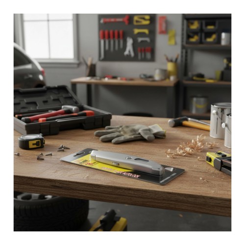 Daugiafunkcis peilis su ištraukiamu trapecijos formos ašmenimis yra praktiškas ir tvirtas įrankis tapetams, kartonui, kilimams, folijai ir daugeliui kitų medžiagų pjaustyti. Metalinis korpusas užtikrina patvarumą, o patogus ašmenų išstūmimo mechanizmas leidžia greitai ir saugiai naudoti.