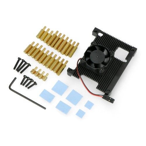 Dėklas - radiatorius + ventiliatorius - radiatorius, skirtas Raspberry Pi 4B - aliuminis - juodas
