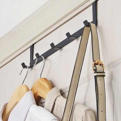 Durų kabykla - 5 kabliukai - juoda - rankena su kabliukais pakabinti ant durų
