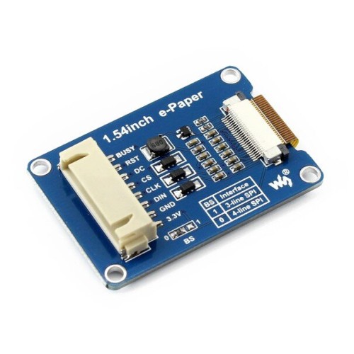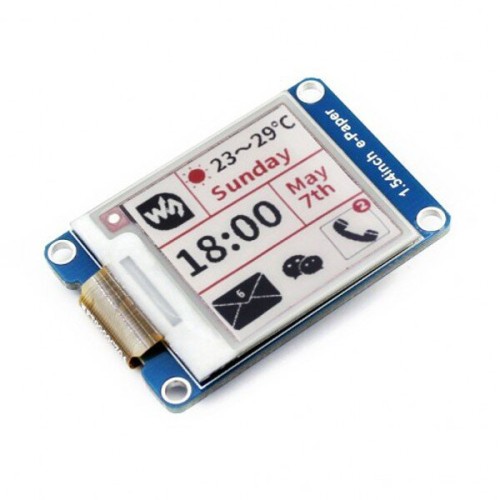 Modulis su 1,54" e-paper ekranu, kurio skiriamoji geba yra 200x200px. Per SPI sąsają sąveikauja su Arduino arba Raspberry Pi. E-paper technologijos dėka prietaisas nevargina akių, kaip tai daro tradiciniai ekranai. Jame rodomi trys spalvos: juodas, raudonas ir baltas kaip fonas. Tokį ekraną galima naudoti skaitant elektronines knygas ir žurnalus.