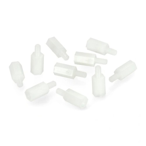 Distance made of plastic, with a length of 10 mm and M3 thread. Price is for 10 pieces. Elements of this type allow to keep a constant distance between the mounted boards.