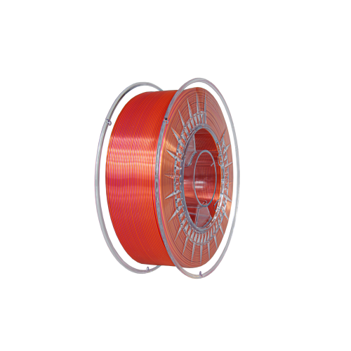 Silk filament from Devil Design is a thermoplastic material in the form of fiber. It is used for 3D printing with the FFF method. Filament in copper color is pre-wound on a spool and vacuum packed with moisture absorber. Spool contains 1 kg of product. It can be used in all FFF printers, which are not protected against the use of felt from external suppliers. Silk is more precisely a blend of PLA and PETG materials, which is characterized by a very high gloss.