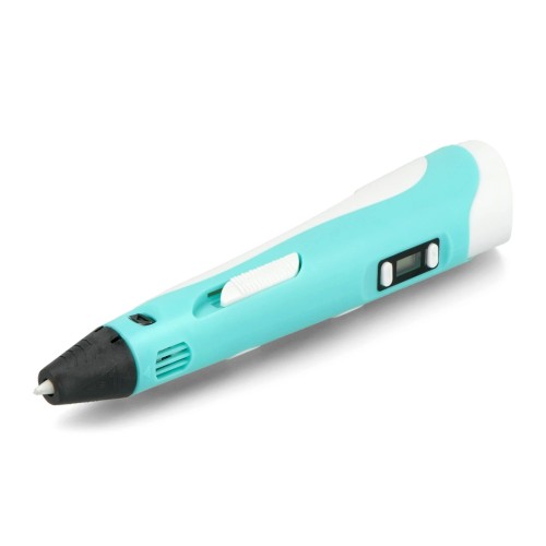 The 3D pen in the blue case allows you to create three-dimensional drawings in the air using the appropriate material in the form of a thread with a diameter of 1.75 mm. The device can be used by children, teenagers, architects and anyone who wants to create inexpensive 3D printed models. A 3D pen uses the same technology as a 3D printer (FDM - Fused Deposition Modeling), but allows printing during the writing process. PLA filament should be used to create models. The nozzle, with a diameter of 0.4mm to 0.7mm, is heated to a temperature of 160°C - 230°C. Temperature and speed can be easily adjusted with buttons. The 3D pen for children is powered by 5V voltage and consumes up to 2A current. The kit includes a 5V/2A power supply, pen holder and thread samples.