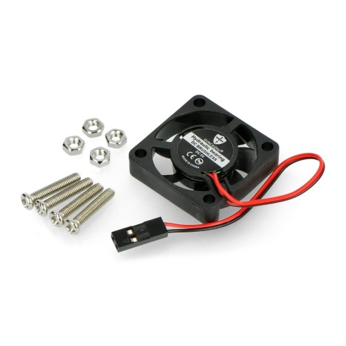 Small 5 V fan with dimensions of 30 x 30 x 7 mm. Can be used as a cooling element in Raspberry Pi cases. Equipped with a two-pin connector for connection with GPIO of a minicomputer. The cable length with the connector is about 10 cm. Kit contains necessary mounting parts, screws and caps.