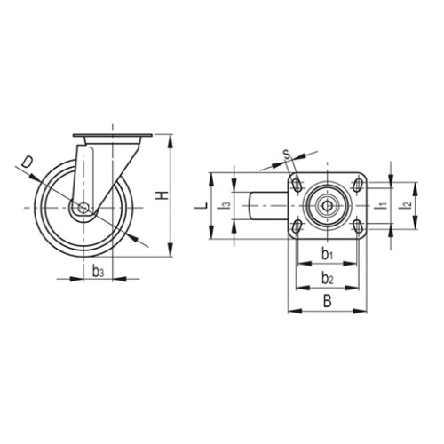 80mm polyurethane swivel wheel with mounting plate, load capacity 120 kg RE.FF-080-SBL-N