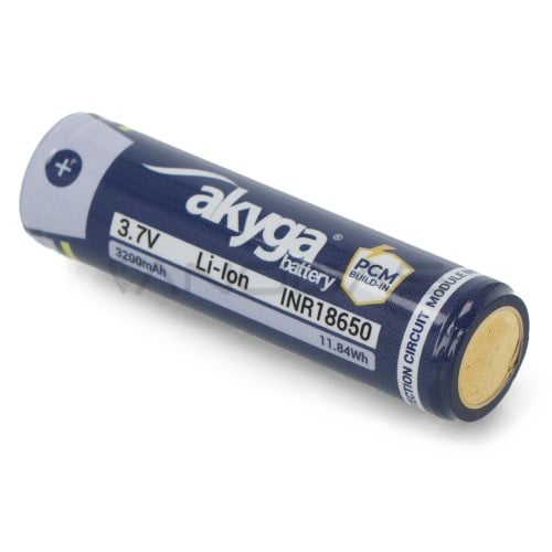 The Akyga INR18650-32M-PCM is a high-quality 3.7V Li-Ion battery with a capacity of 3200mAh. It is designed for long-term use in a variety of electronic devices, providing stable power. Equipped with a PCM protection module, the battery protects against overcharging, over-discharging, and short circuits, increasing safety and battery life. It is ideal for applications in portable devices, backup power systems, renewable energy projects, and robotics.