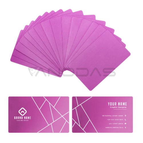 - 100 anodized aluminum business cards in blue, purple, black or gold.