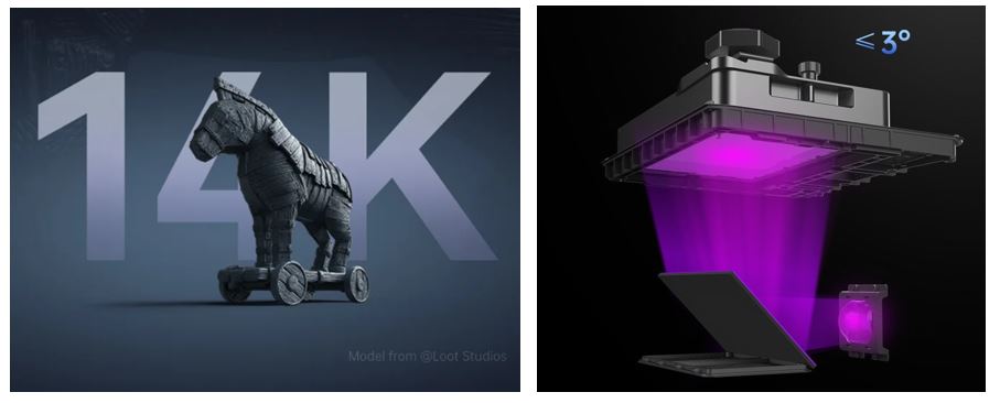 - Recommended maximum print speed: 468000 mm/h (depending on the material)