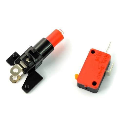 Large button with an outer diameter of 6 cm with a built-in red LED.