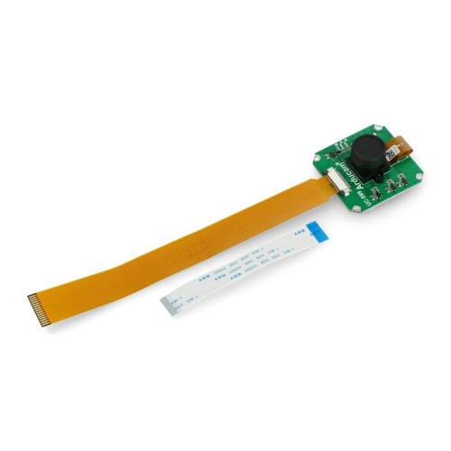 Camera module with Omnivision OV2311 sensor, 1/4" diagonal, allowing transmission of B/W images at 1280x800px resolution. The sensor uses OmniPixel3-GS technology. It comes with a 130° D / 110° H / 90° V lens mounted on an M12 threaded mount. The unit has been designed for Raspberry minicomputers, no additional accessories are required to mount the camera, the necessary tape connection is included. The presented set is vulnerable to infrared radiation.