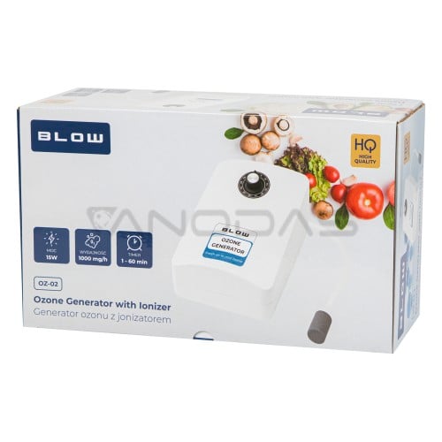The efficient BLOW OZ-02 ozonator is a universal air and water purifier that eliminates bacteria, viruses, allergens, and unpleasant odors. Its ionization function improves air quality, leaving it fresh and clean. Its compact design and quiet operation make it ideal for home, office, and car use.