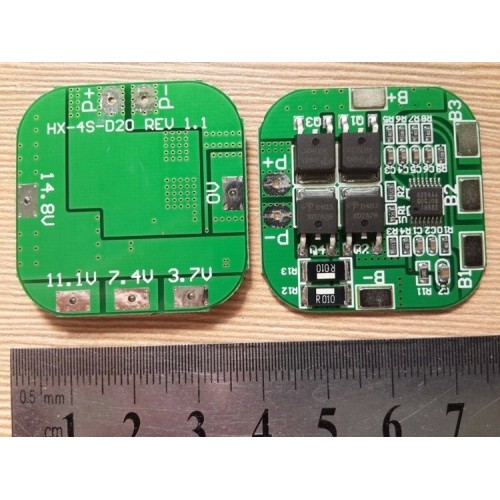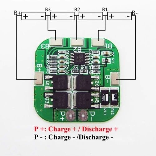 - Li-Ion cell charging and protection module - 4S - 16V - 5A - for 18650 cells - green plate