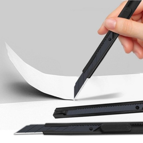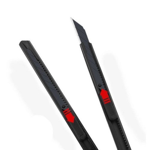 Bookbinding knife with black ergonomic handle and extendable 9mm blade is an indispensable tool for bookbinding professionals, as well as for do-it-yourselfers.