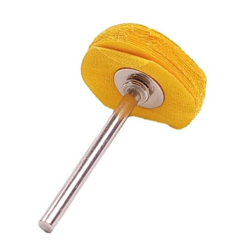 Cotton polishing tip, mounts to dremel, mini rubbermaid. Designed for small jobs in DIY projects, model making, electronics, etc.