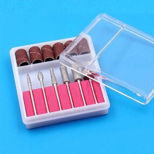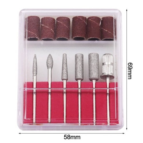 A set of diamond cutters and polishing caps intended for daily nail care, manicure and pedicure.