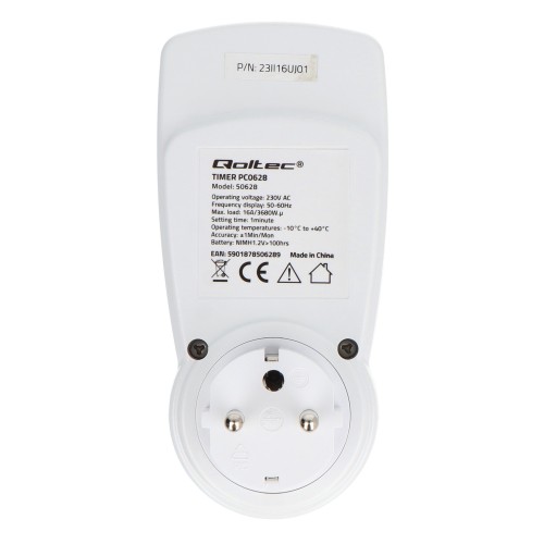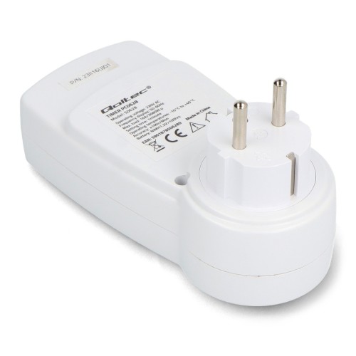 The Qoltec PC0628 electronic timer is a practical device for automatically controlling the operation of 230V electrical devices. Equipped with a clear LCD display, it allows you to program up to 10 on/off cycles per day, translating into real energy savings. With support for loads up to 3680W, it's ideal for managing lighting, heating, and TV systems. It offers a random mode, a daylight saving time function, and a built-in battery to maintain settings.