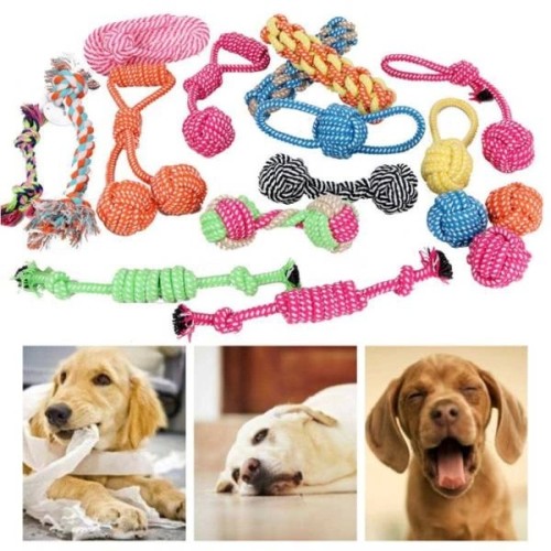 - Cotton string braided into a ball with a loop is a great toy for a dog.