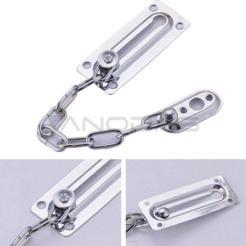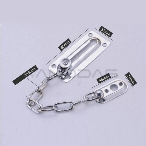 The door safety chain is a practical limiter that allows you to open only part of the door. Thus increasing safety when opening doors to strangers. It has a lock to prevent accidental movement of the chain.