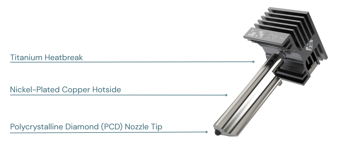 - Compatible with carbon fiber, fiberglass, metal and ceramic filaments.
