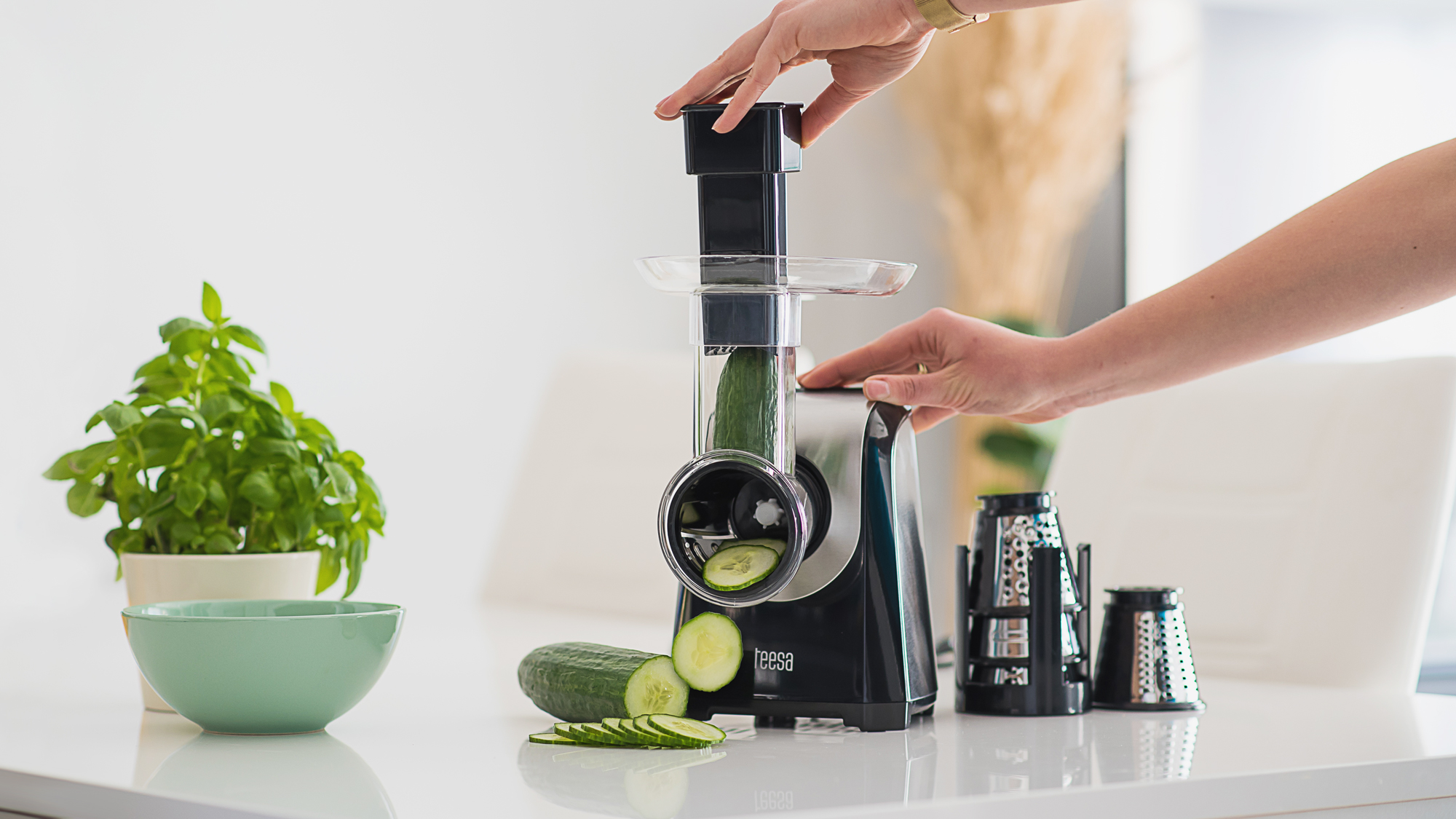 - Types of graters: 4 cutting graters: thin slices, thin bars, slices, sticks, 1 grater for grating