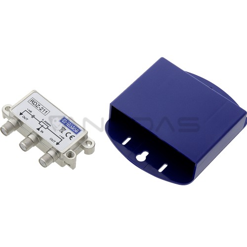 Splitter/combiner designed for use in collective and individual RTV antenna installations. Its task is to branch or combine 2-antenna signals. The device is recommended especially in cases where it is not possible to implement a "star" installation with cables from all sockets to one housing box.
