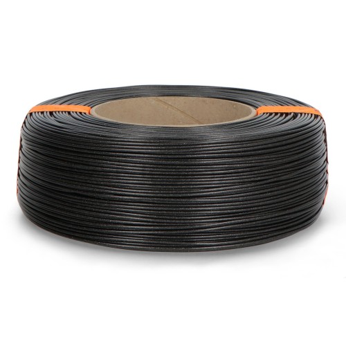 Prusament PLA in black is a high-quality PLA filament in a refill version—no plastic spool required. The filament is wound on a cardboard core, allowing for the reuse of existing Prusament spools. It is characterized by ease of printing and high dimensional accuracy (±0.02 mm). The filament diameter is 1.75 mm, and the material weighs 1 kg.
