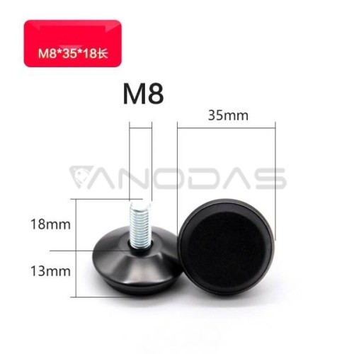 Foot with joint 35x18mm black - furniture leg M8 - adjustable foot for furniture