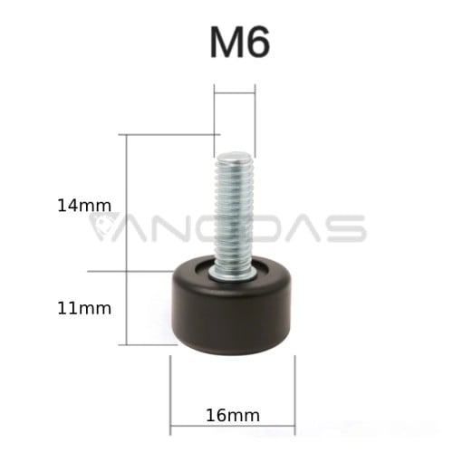 - Adjustable foot for furniture - M6 16x14mm - black - furniture leg - rollers - 1 piece.