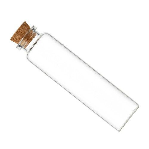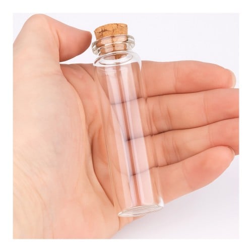 Glass bottle with cork with a capacity of 30 ml is an excellent choice for storing small amounts of liquids, oils, herbs, samples, or as a decorative item. It is transparent vial with a diameter of 2.2 cm and a height of 12 cm, which makes it handy but still provides enough capacity.