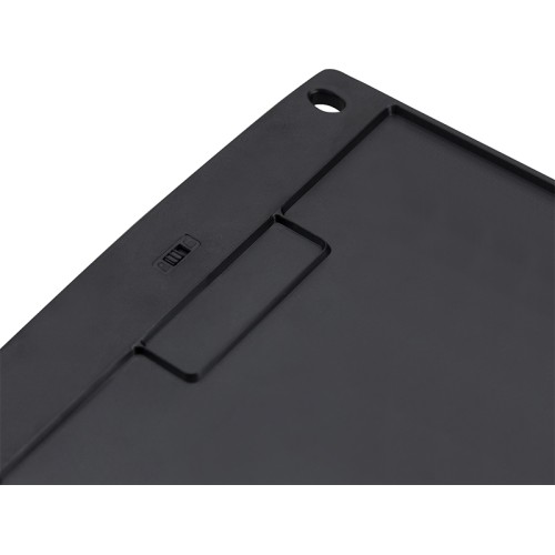 The tablet is easy to use. Powered by a CR2032 battery included in the set. The power button of the tablet is located on the back, and on the front there is a button to clean the screen. In addition, it has a built-in stylus holder and a hole that allows you to hang it, for example, on a leash or string.