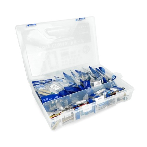 The set consists of 40 modules and a set of cables with a Grove interface. The set can be used by anyone regardless of age or level of sophistication. Each module included in the set works with Arduino and Arduino compliant boards. The set also includes a user guide with sample projects and programs.