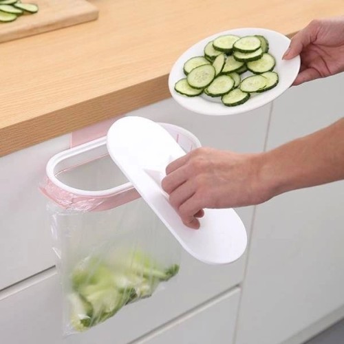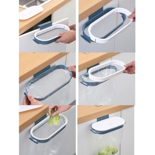 Hanging holder for garbage bags - green and white - Bin for cabinet doors for waste segregation