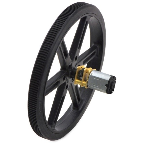 A powerful, small-sized Pololu motor with a 75:1 gearbox, 400 rpm and 1.6 kg/cm (0.15 Nm) torque.