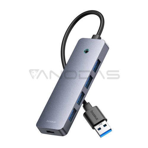Hub 4in1 Baseus UltraJoy Lite 15cm USB-A to 4x USB 3.0 + USB-C 5V (grey)