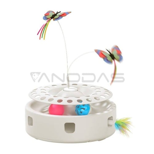 Three modes of play for more varietyRojeco's toy combines three elements - a spinning butterfly, a popping feather and balls that move along a track. The butterfly moves erratically, which engages the cat's attention and stimulates its hunting instinct. The randomly popping feather, on the other hand, attracts attention and surprises, making cats eager to try to catch it. The last element is the balls, which roll along a smooth track, providing long-lasting and safe entertainment.