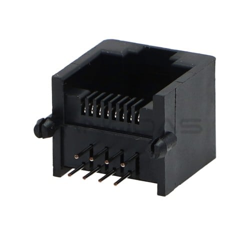 Jack, RJ45 8p8c, 9612-8813, through hole (THT), angled 90°, black, latching, RoHS