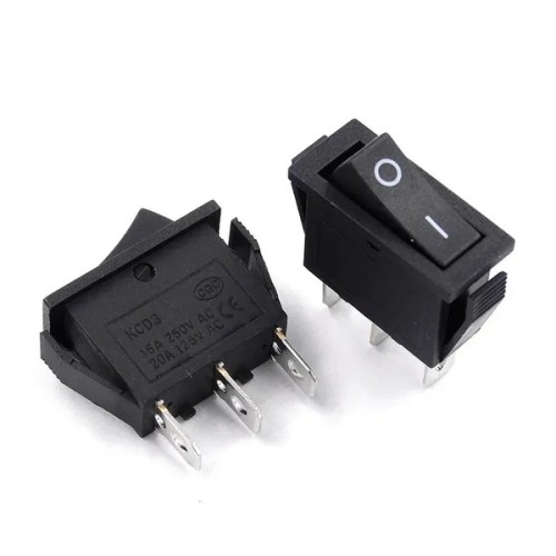 The KCD3 rocker switch is a reliable electrical component designed to operate 230V devices, equipped with an ON/OFF mechanism for easy control.