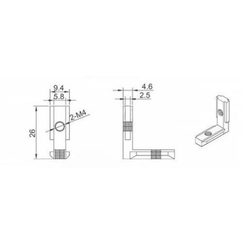 L-Type angle connector for aluminum profiles 2020- M4 - TSLOT, T-NUT, TNUT