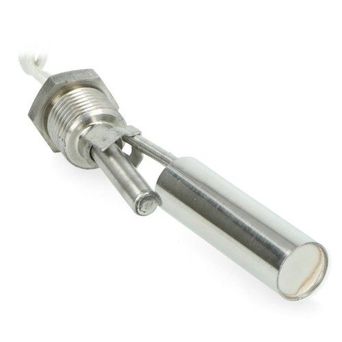 Durable, high-quality float sensor, measures liquid levels. It is used where control over the measurement of liquids is still necessary, e.g. in water tanks. The sensor is equipped with a float and a magnet. Under the influence of water force, the reed switch shuts or opens, moving along the tube. The sensor has small dimensions: sensor diameter 17 mm, length 118 mm.