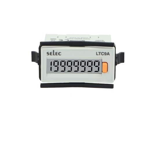 The Selec LTC9A pulse counter is an advanced measurement tool for monitoring working hours. With its panel mounting and 7.5 digit LCD display, it is easy to integrate and provides readability. It offers a wide measurement range (up to 1999 hours, 59 minutes and 59 seconds or 199999.99 hours for pulses) and voltage measurement from 24V to 240V AC/DC. Its accuracy of 0.05% ensures precise measurements even in difficult conditions. The LTC9A has a compact size (48mm x 24mm x 48mm), ideal for places with limited space. It is a reliable tool for monitoring working hours in industry.